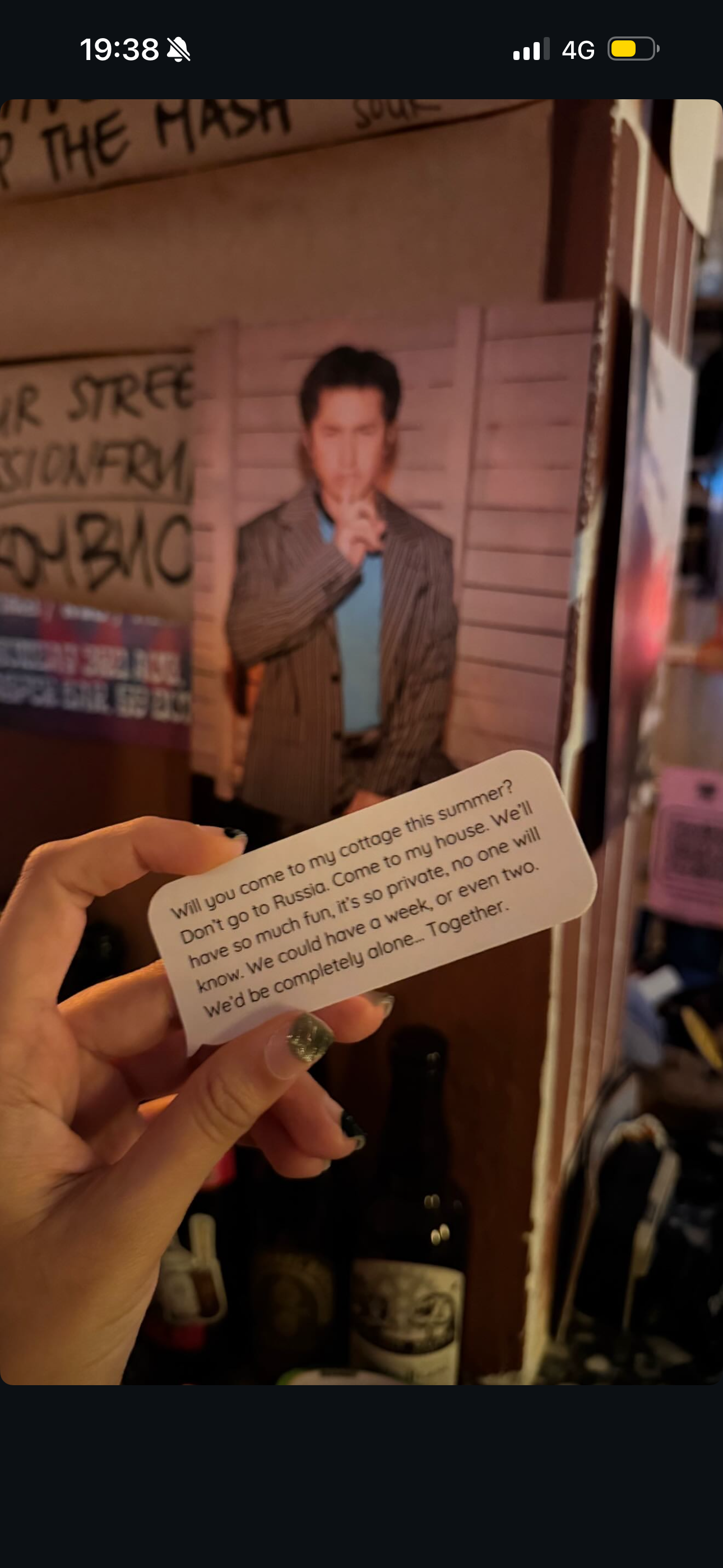 The entrance set the scene: Jane and Lily's iconic texts lining the walls, tracing their slow-burn romance message by message. Step through the curtains and you're met with posters of the two stars covering every nook and cranny. Even the cups and drinks menu were dressed for the occasion.
